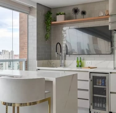 A varanda gourmet é um espaço que combina o conforto de uma área externa com a praticidade de uma cozinha. Ela se tornou um verdadeiro fenômeno no mercado imobiliário, especialmente em condomínios. O conceito é simples: ter uma área onde você possa cozinhar e receber amigos e familiares ao ar livre, além de desfrutar de um bom churrasco ou de uma refeição em meio à natureza.